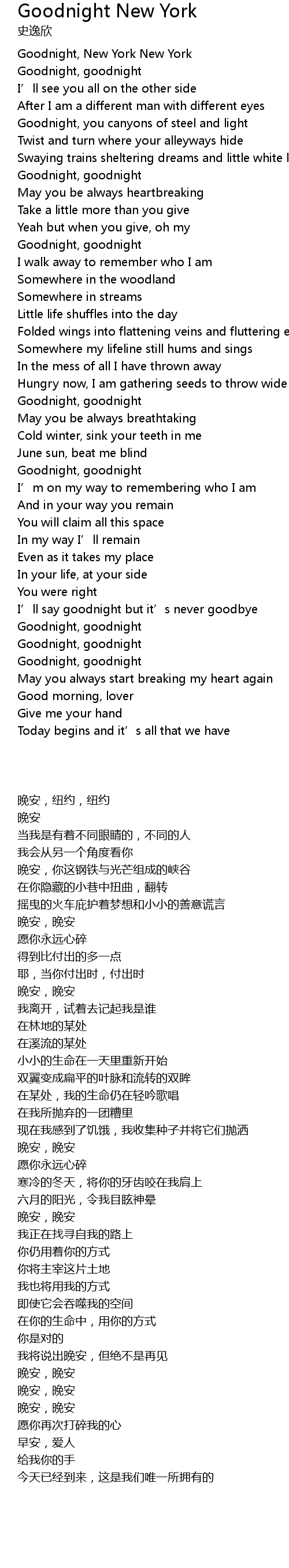 | [00:17.15] | 晚安,纽约,纽约 |