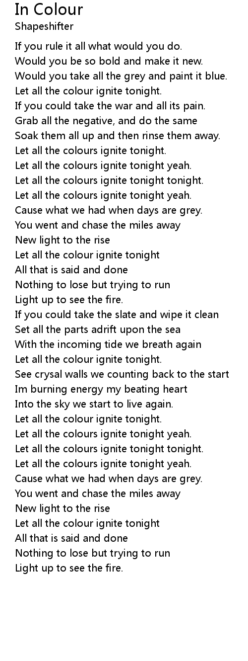 Let all the colours ignite tonight yeah.