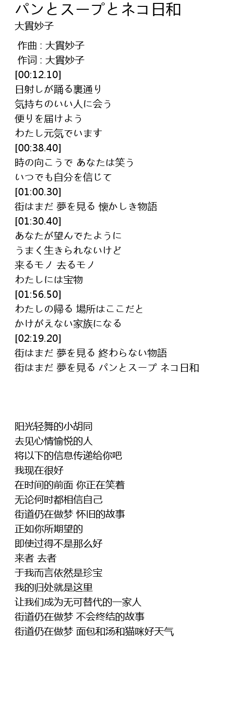 | [02:32.00] | 街はまだ 夢を見る パンとスープ ネコ日和 |