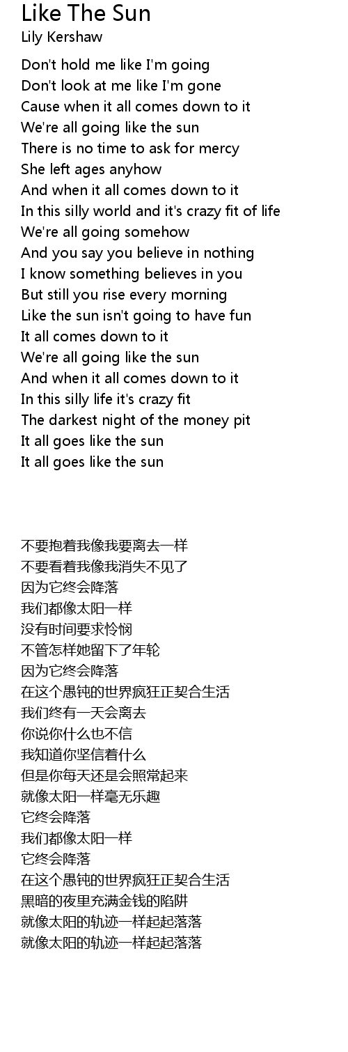 We're all going like the sun |