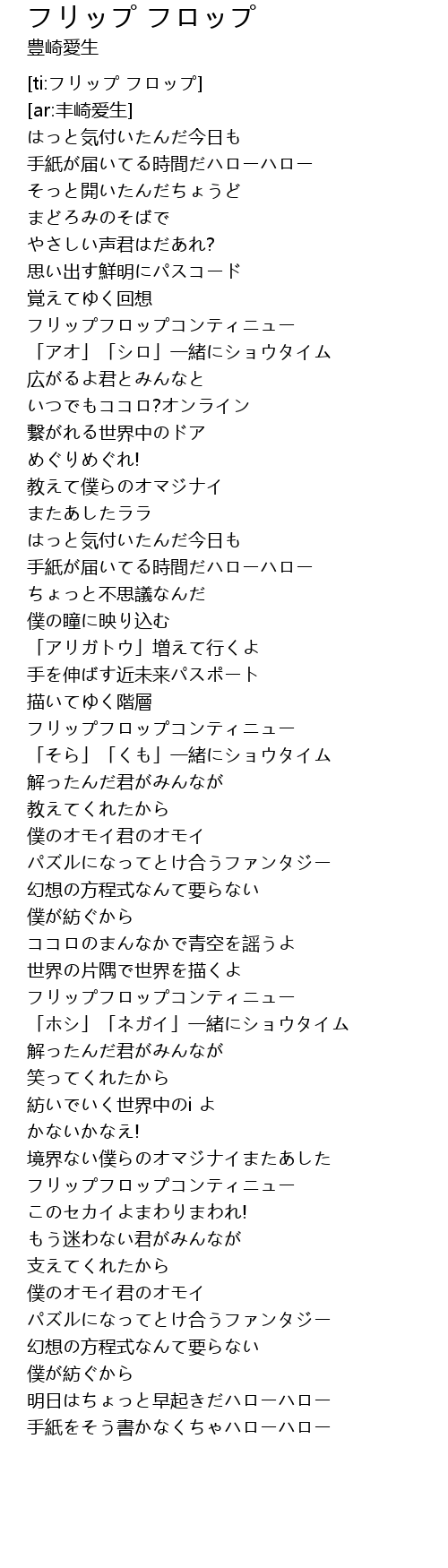 | [04:10.555] | 手紙をそう書かなくちゃハローハロー |