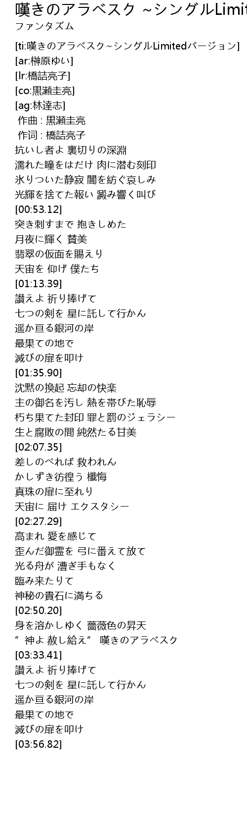 | [ti:嘆きのアラベスク~シングルLimitedバージョン] | |