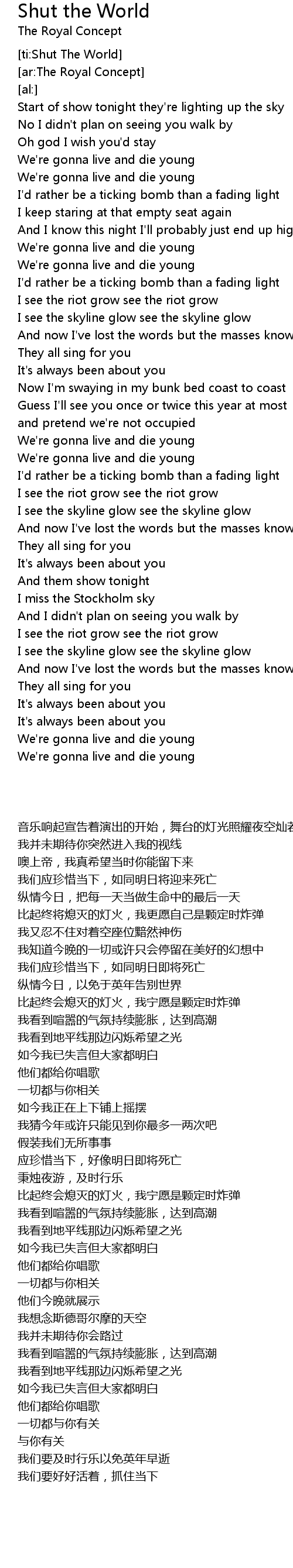 [ti:Shut The World] |
