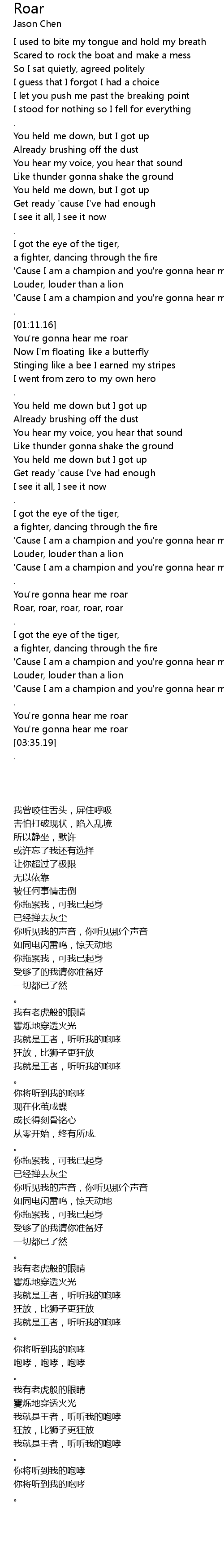 Roar, roar, roar, roar, roar |