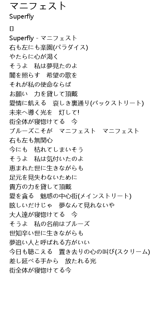 | [00:02.510] | Superfly - マニフェスト |