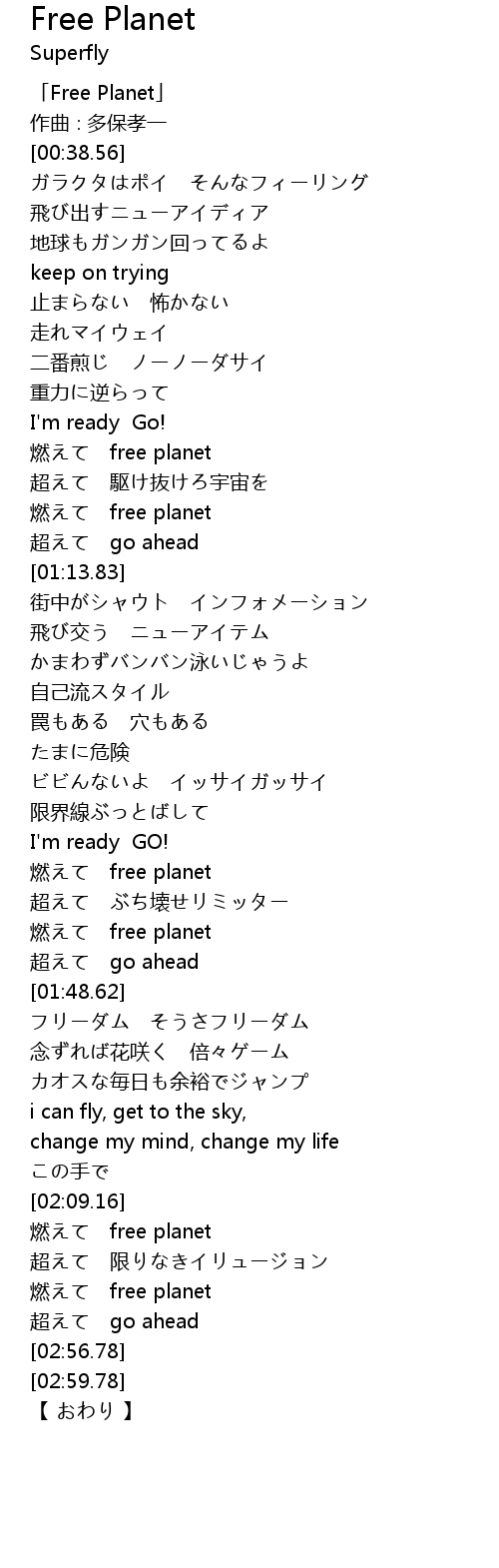 | [00:45.22] | 地球もガンガン回ってるよ |