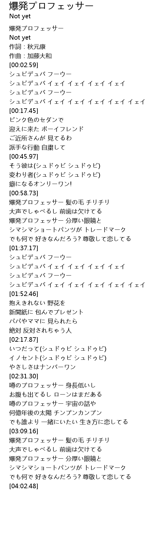 | [03:38.08] | 爆発プロフェッサー 分厚い眼鏡と |