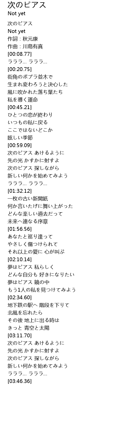 | [00:00.00] | 次のピアス |