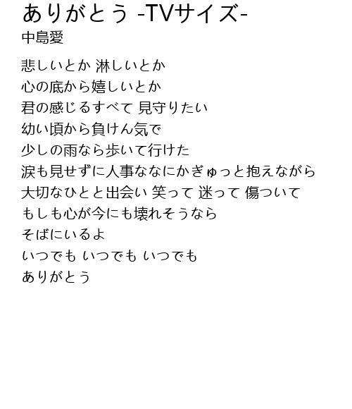 | 歌曲 | ありがとう -TVサイズ- |