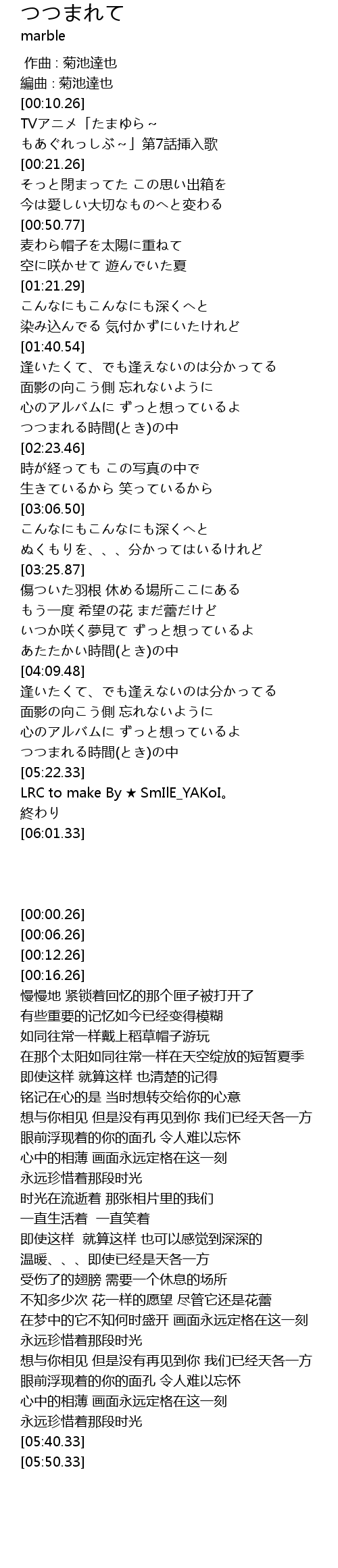 | [00:12.26] | TVアニメ「たまゆら~ |