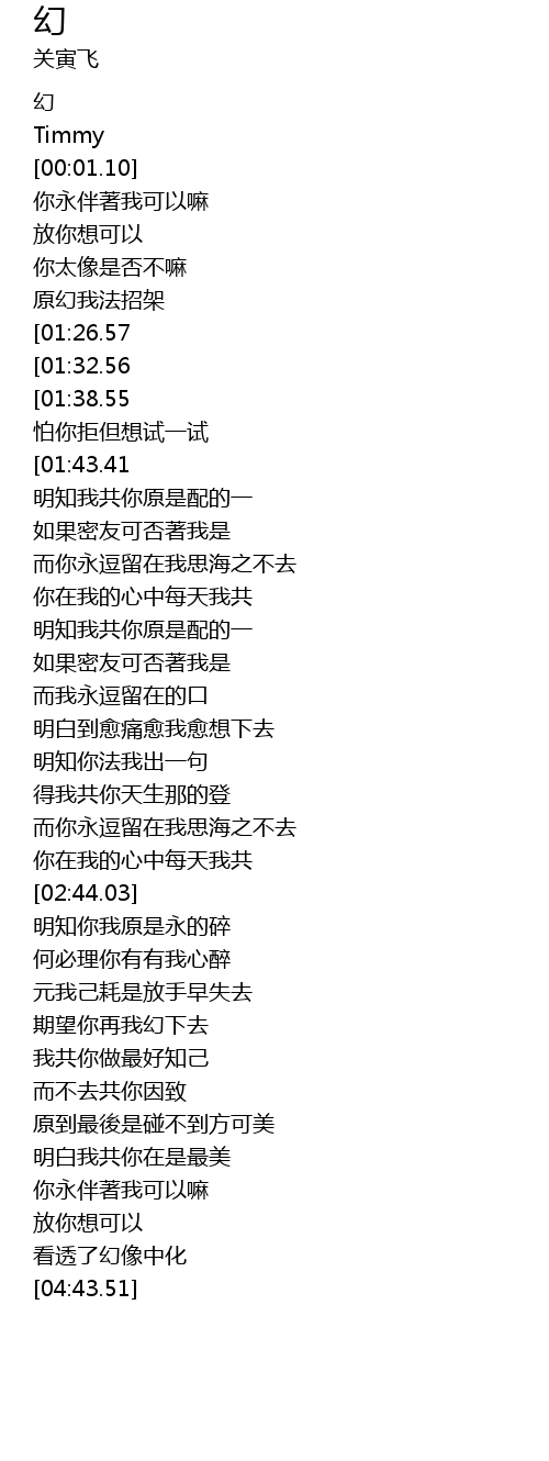 | [03:43.49] | 期望你再我幻下去 |