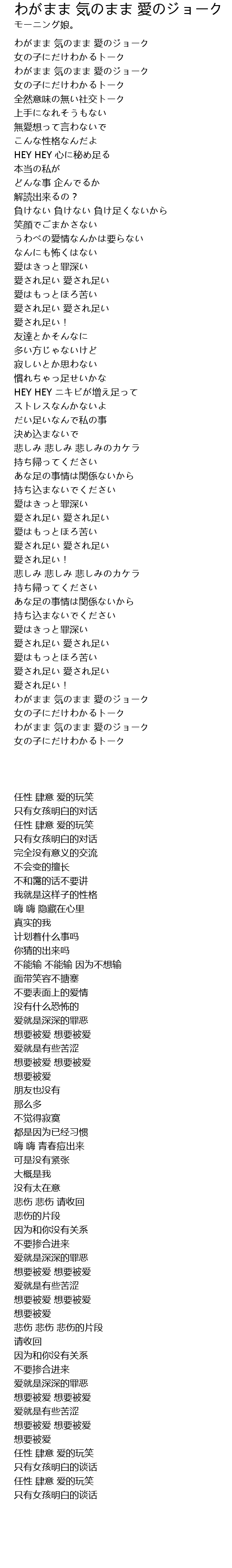 | 歌曲 | わがまま 気のまま 愛のジョーク |