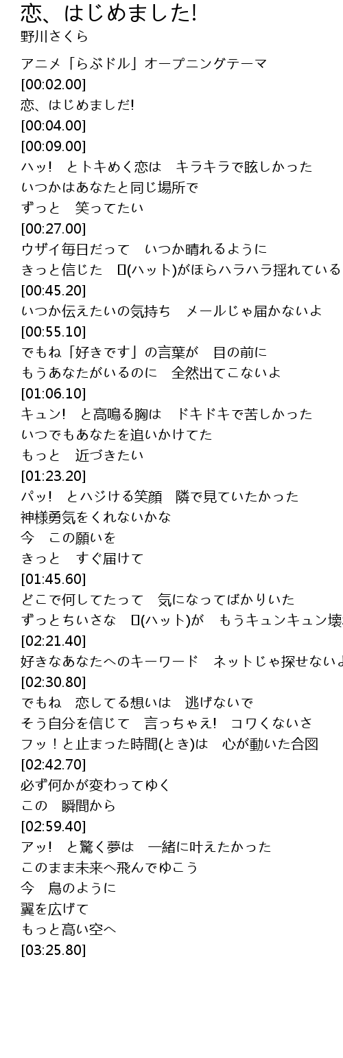 | [02:13.70] | ずっとちいさな ♡(ハット)が もうキュンキュン壊れそう |