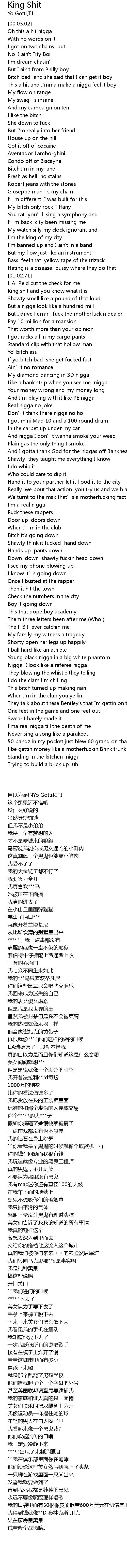 | [01:14.33] | King shit and you know what it is |