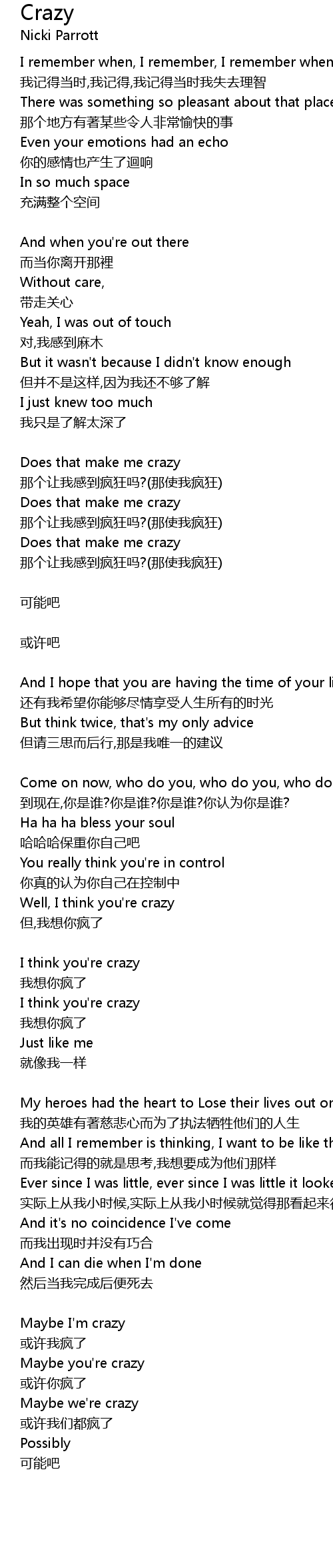 | 歌曲 | Crazy |