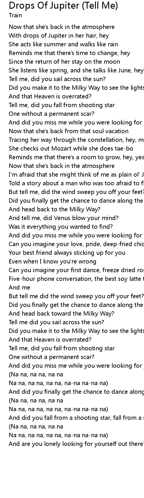With drops of Jupiter in her hair, hey |