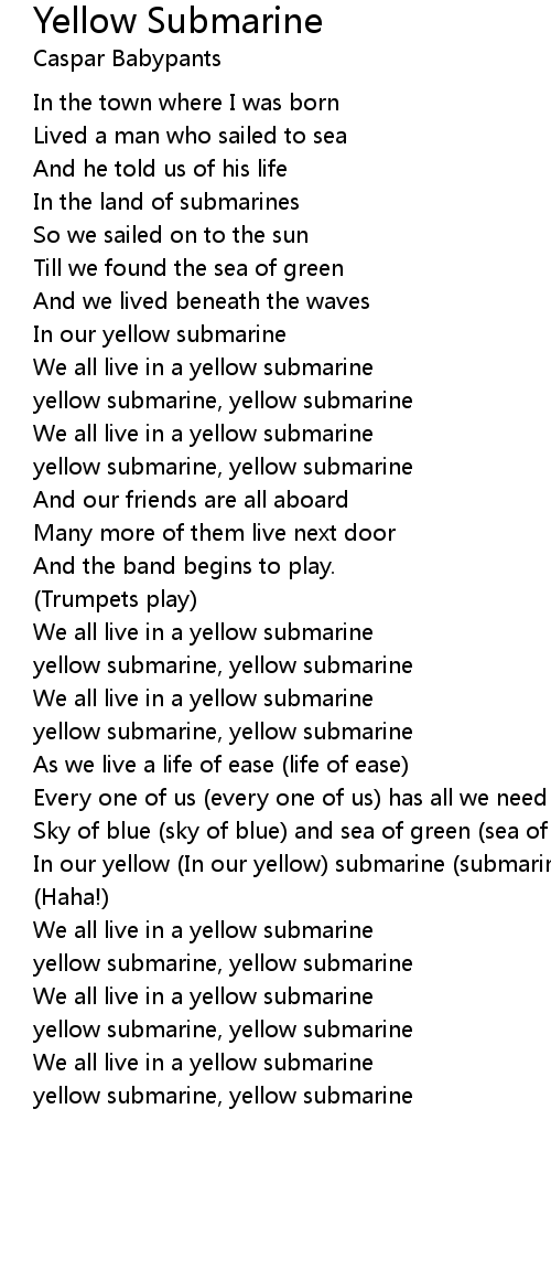 In our yellow (In our yellow) submarine (submarine) |