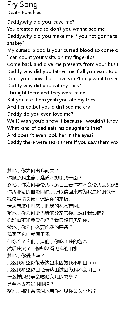 [00:39.2] 爹地,你为什么要吃我的薯条?