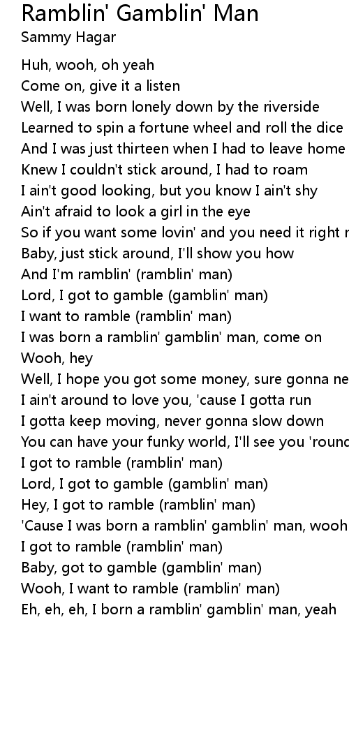 Eh, eh, eh, I born a ramblin' gamblin' man, yeah |