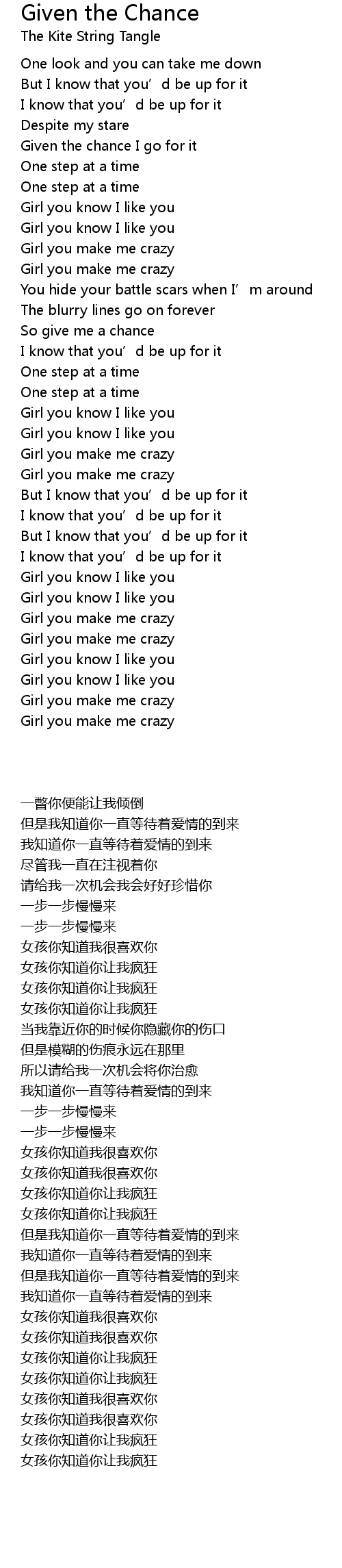 | [00:55.40] | Girl you know I like you |