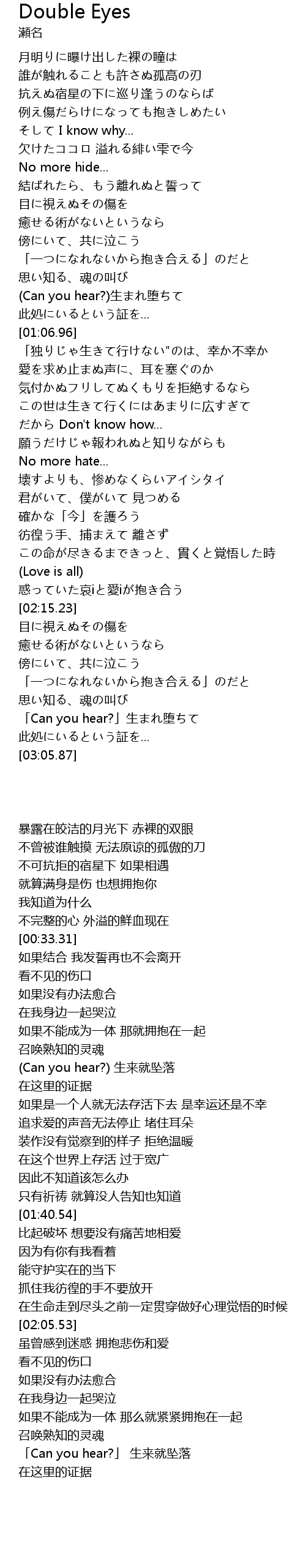 | [00:58.90] | (Can you hear?)生まれ堕ちて |
