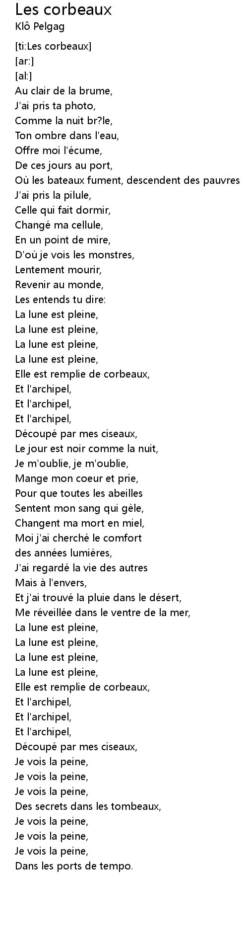| [00:48.37] | Elle est remplie de corbeaux, |