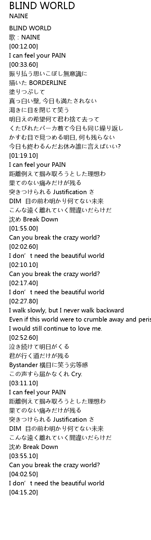 | [03:39.30] | DIM 目の前わ明かり何てない未来 |