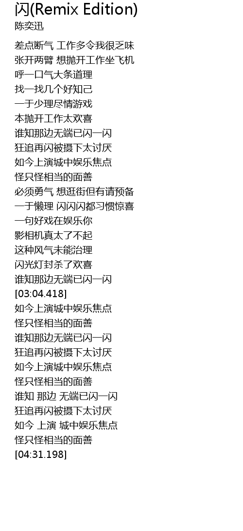 | [03:56.598] | 狂追再闪被摄下太讨厌 |