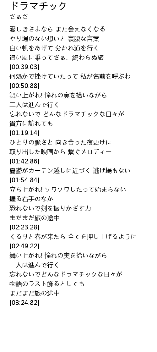 | [00:26.73] | 白い帆をあげて 分かれ道を行く |