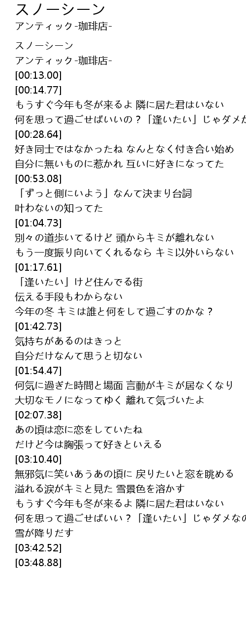 | [00:15.42] | もうすぐ今年も冬が来るよ 隣に居た君はいない |