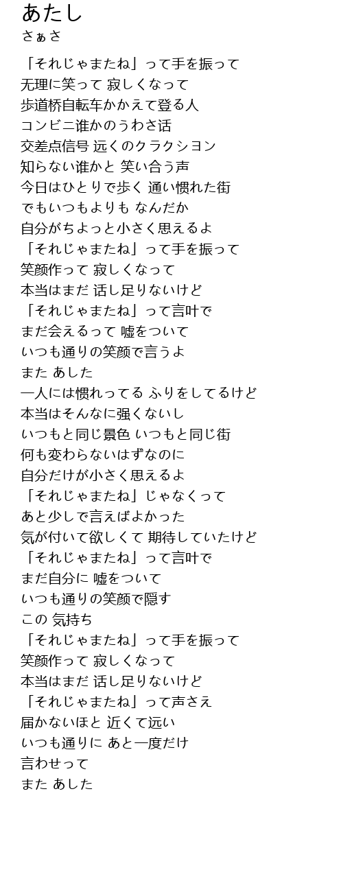 | [01:38.98] | また あした |