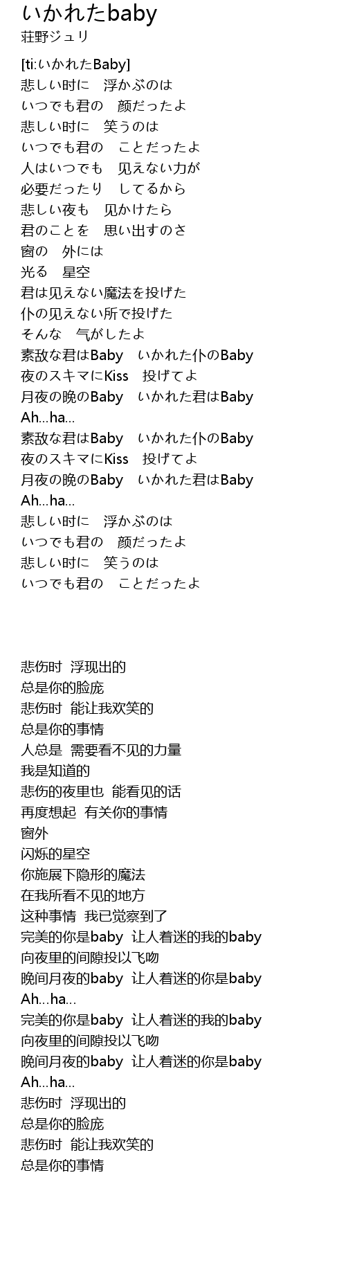 | [01:20.67] | 素敌な君はBaby いかれた仆のBaby |