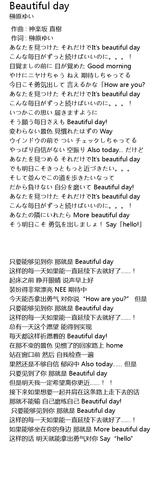 | [00:15.54] | 只要能够见到你 那就是 Beautiful day |