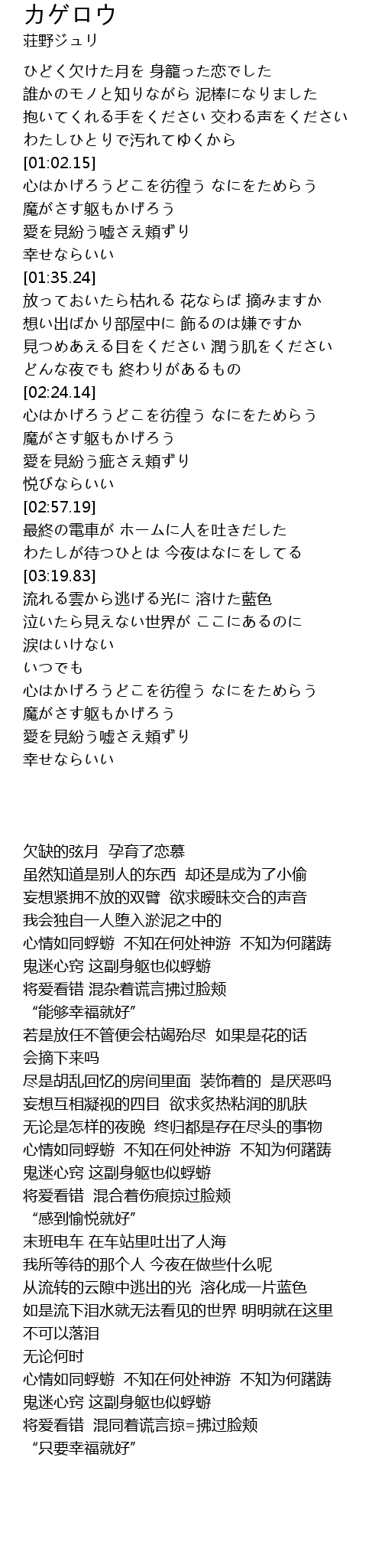 | [00:14.70] | 欠缺的弦月 孕育了恋慕 |