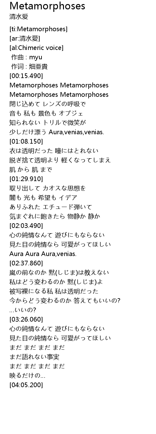 | [00:17.490] | Metamorphoses Metamorphoses |