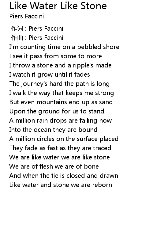 | [00:26.55] | I'm counting time on a pebbled shore |