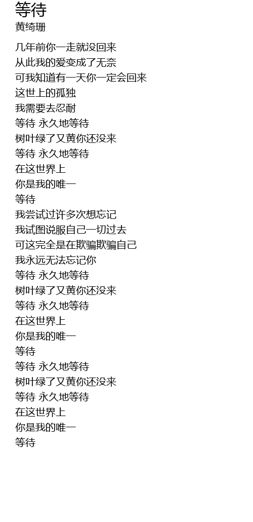 | [03:26.83] | děng dài yǒng jiǔ dì děng dài |