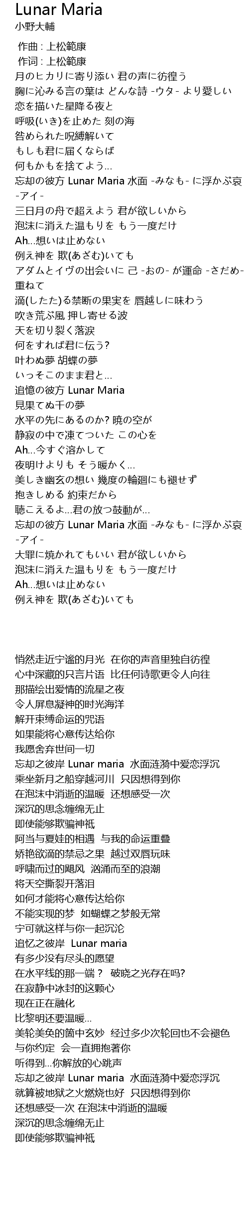| [01:02.760] | 忘却之彼岸 Lunar maria 水面涟漪中爱恋浮沉 |