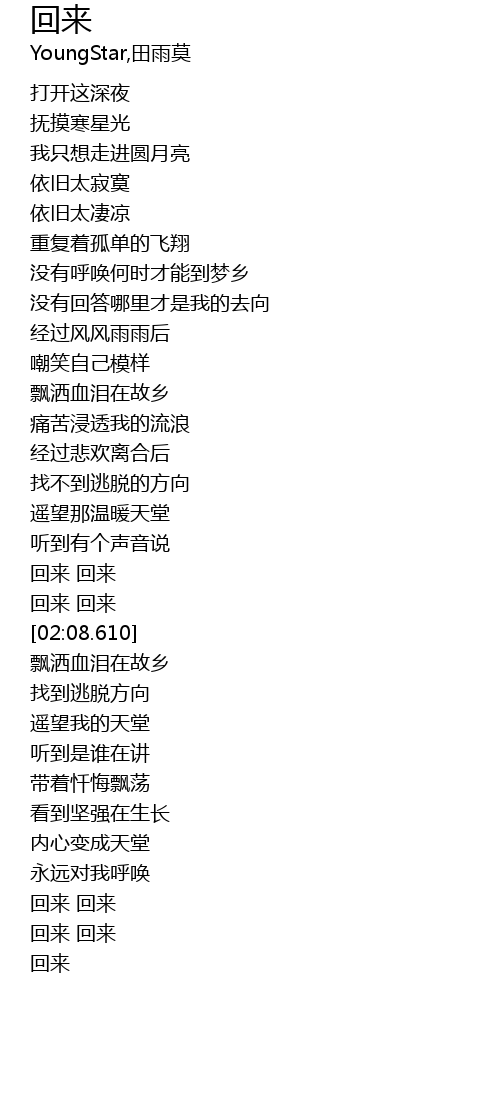 | [01:08.589] | 没有呼唤何时才能到梦乡 |