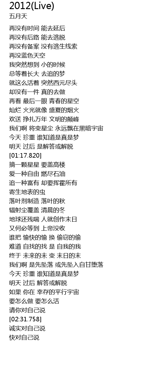 | [01:43.820] | 地球还残喘 人就创作末日 |