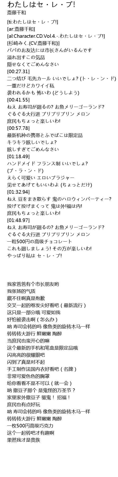 | [02:43.73] | やっぱり私は セ・レ・ブ! |