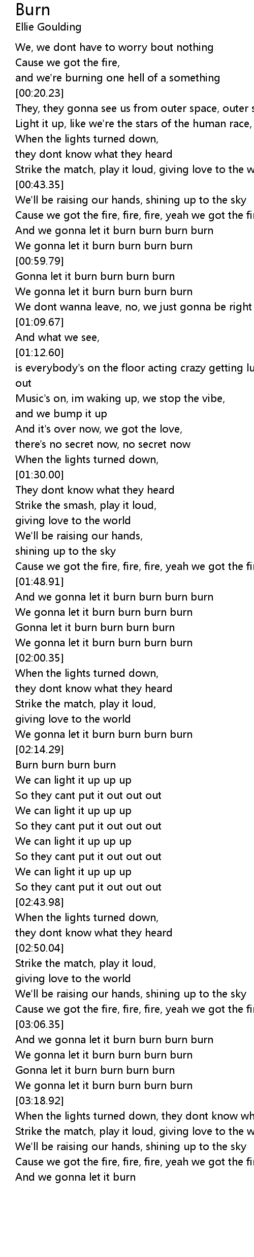 We gonna let it burn burn burn burn |