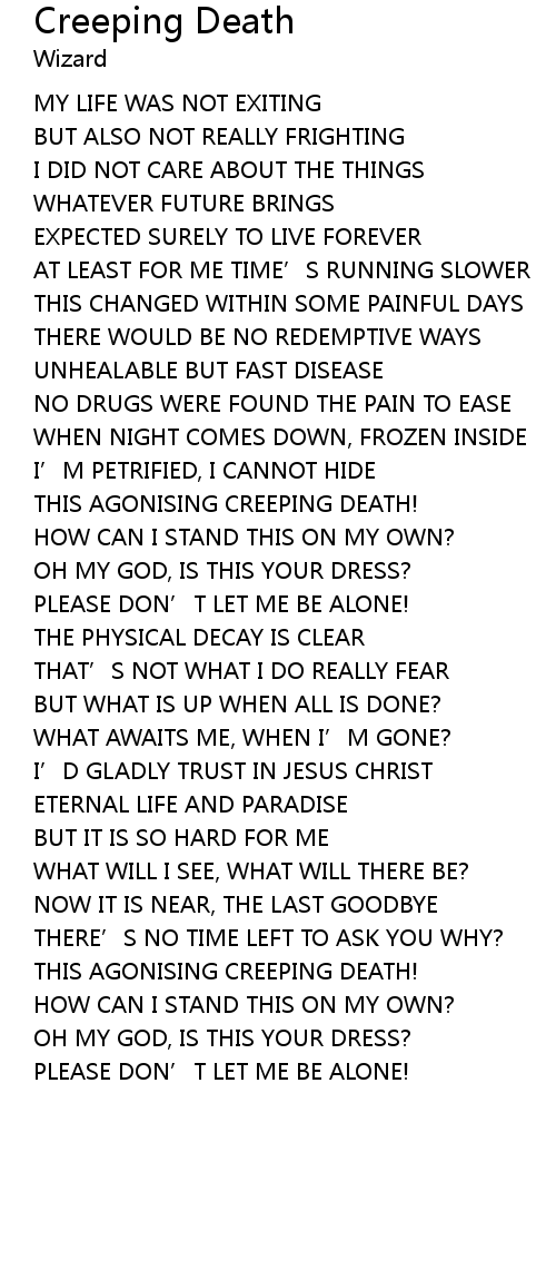| THIS AGONISING CREEPING DEATH! | |