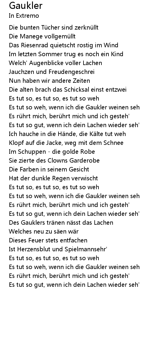 | Es tut so weh, wenn ich die Gaukler weinen seh | |
