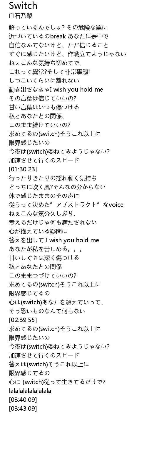 | [03:00.69] | 求めてるの(switch)そうこれ以上に |