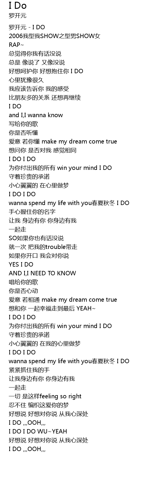 | 歌曲 | I Do |