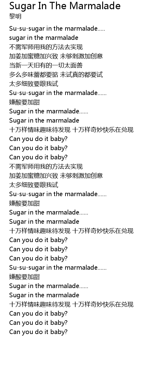 | [01:15.450] | Su-su-sugar in the marmalade...... |