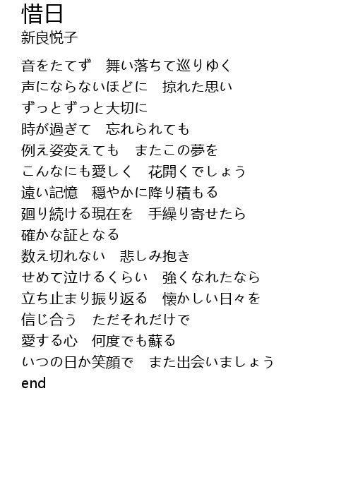 | [02:03.24] | 遠い記憶 穏やかに降り積もる |