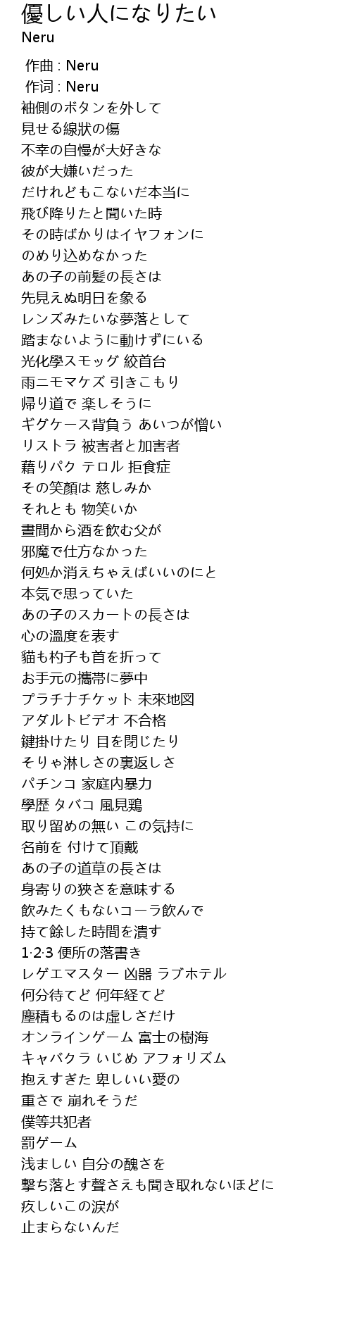 | [00:01.00] | 作词 : Neru |
