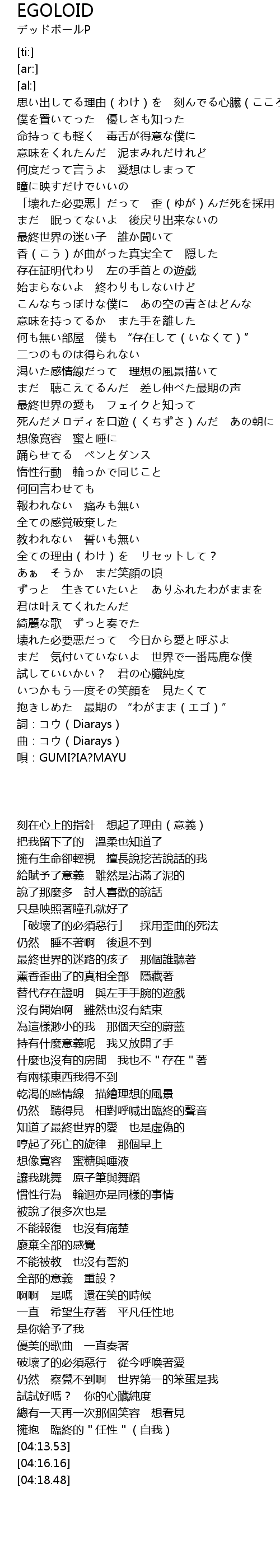 | [04:18.48] | 唄:GUMI?IA?MAYU |